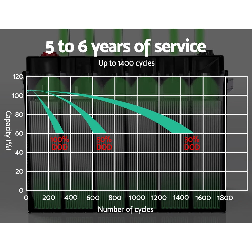 Our portable GIANTZ Deep Cycle Battery provides off-the-grid power supply for 4WD vehicles, caravans, campers, trailers, motorhomes, saltwater/marine applications, and all 12V appliances including portable fridges and washers. The 135Ah 12V battery features an incredible cycle life of up to 1400 cycles, making it one of the most enduring in its class. What you get is a longer, consistent and more drawn out charge all the time. And with its advanced AGM technology, the battery enables better electrolyte absorption, cyclic stability and frequent charging without affecting performance. The bolt down terminals also allows for more reliable experience, and not least, the high oxygen-recombination efficiency results in superior deep discharge recovery. The maintenance-free deep cycle battery is completely sealed, spill-proof and does not leak gas for added safety and durable use.